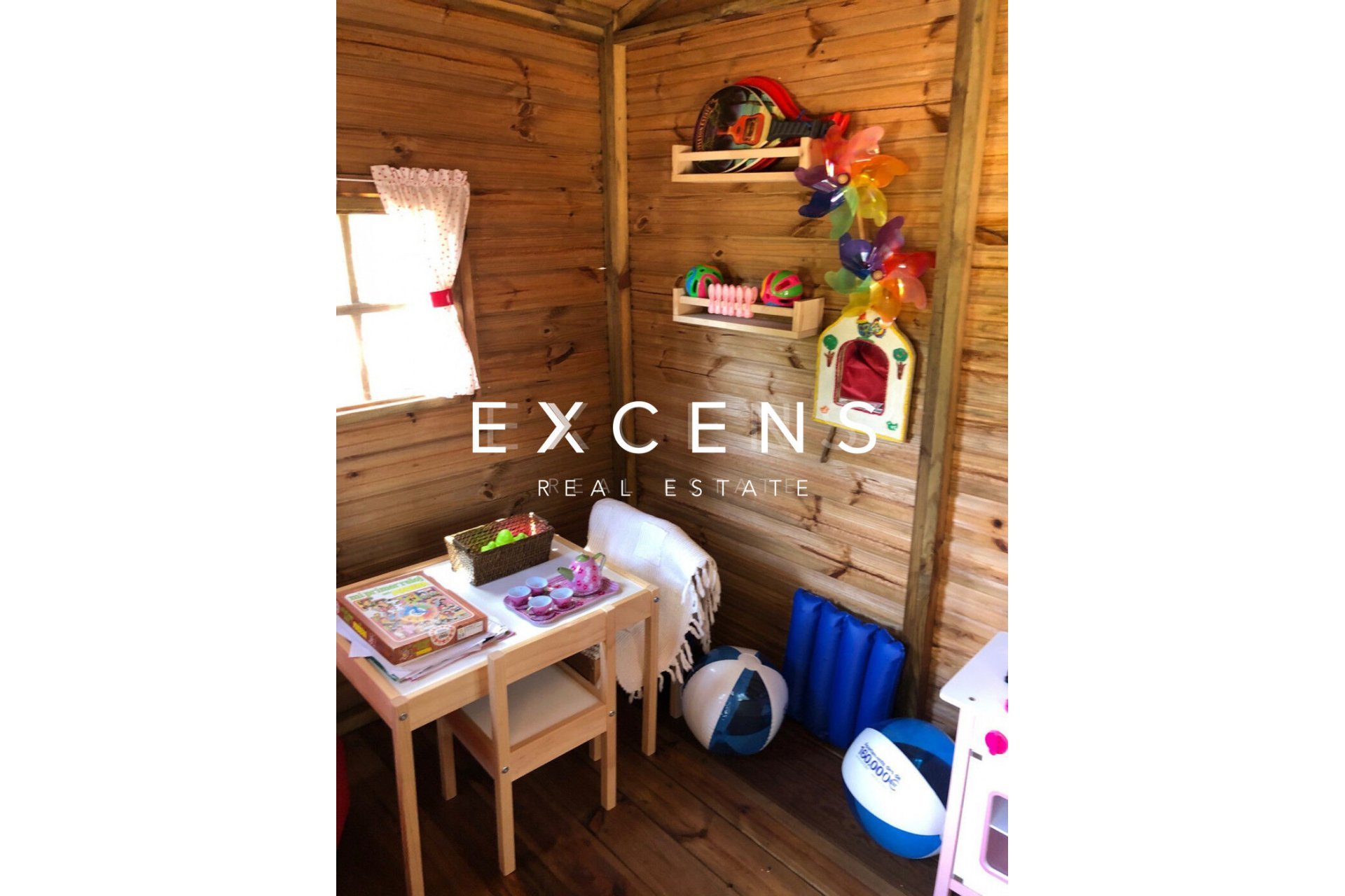 Piscina, pádel, huerto, casita de madera infantil.